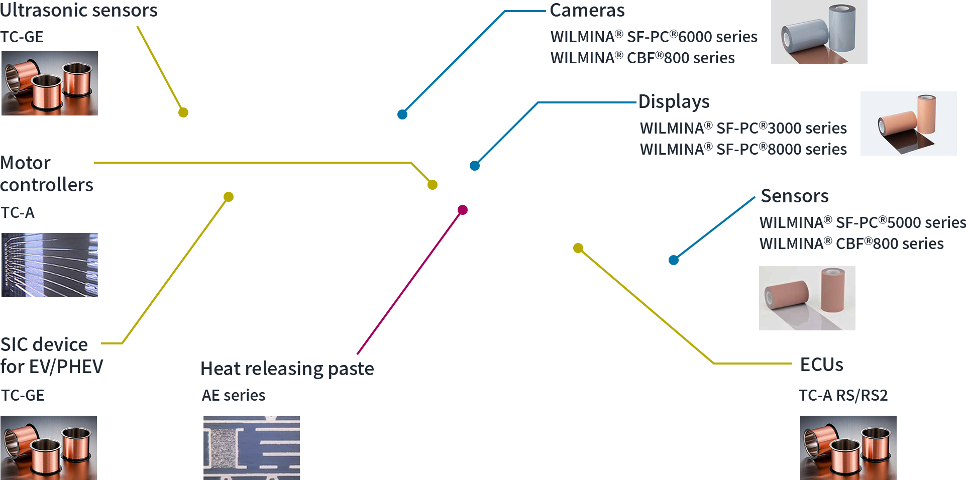 Utilizing the core technologies cultivated in electric wire manufacturing, we developed conductive pastes as electronic materials. Later, we developed the world’s first EMI shielding film, which is indispensable for mobile devices such as smartphones, and won an overwhelming global market share with this product.